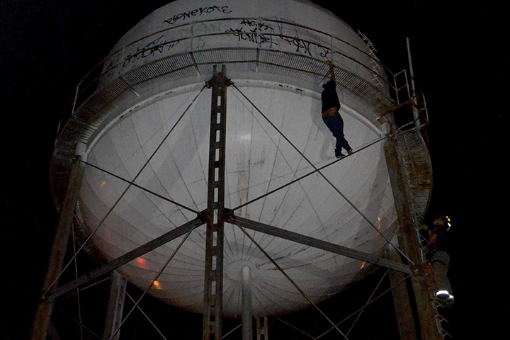 NOTICIAS 08/09/2015A punto de lanzarse desde un tanqueUn joven que amagaba con aventarse del tanque elevado ubicado en el fraccionamiento Lomas de Morelia, cerca del Libramiento Revolución, de esta ciudad, provocó una fuerte movilización policíaca y de bomberos; persona que al final bajó de la estructura por sí sola y la situación no pasó a mayores. El muchacho estaba bajo los influjos del alcohol y de alguna droga, refirieron los socorristas que lo atendieron.