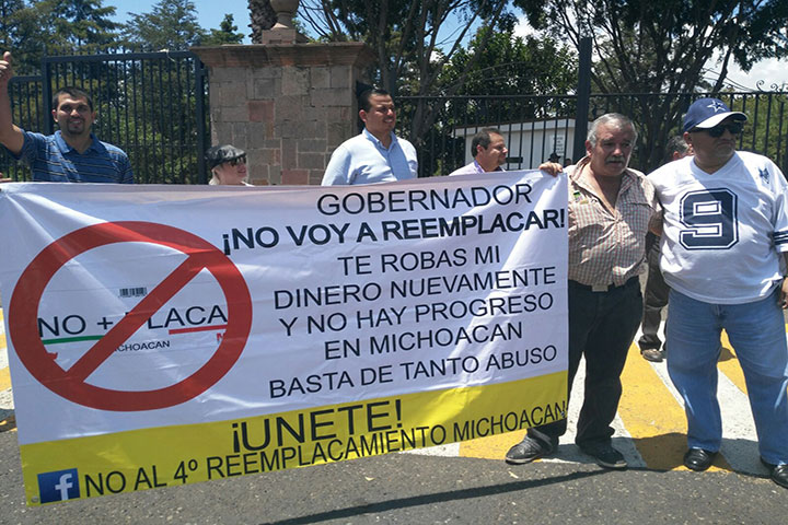 NOTICIAS 08/09/2015Memo Valencia encabeza protesta contra el reemplacamiento Guillermo Valencia Reyes, ex edil de Tepalcatepec y ex diputado local, encabeza la movilización emprendida por automovilistas en contra del reemplacamiento.