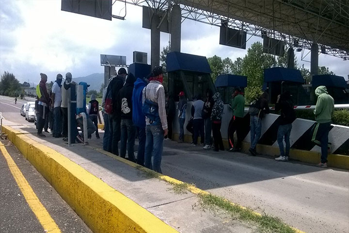 La mañana de este miércoles alumnos normalistas se encontraban en la caseta de peaje ubicada en esta zona de Zinapécuaro, sobre la Autopista de Occidente, en el tramo carretero México- Guadalajara.