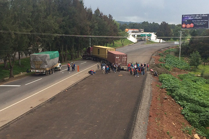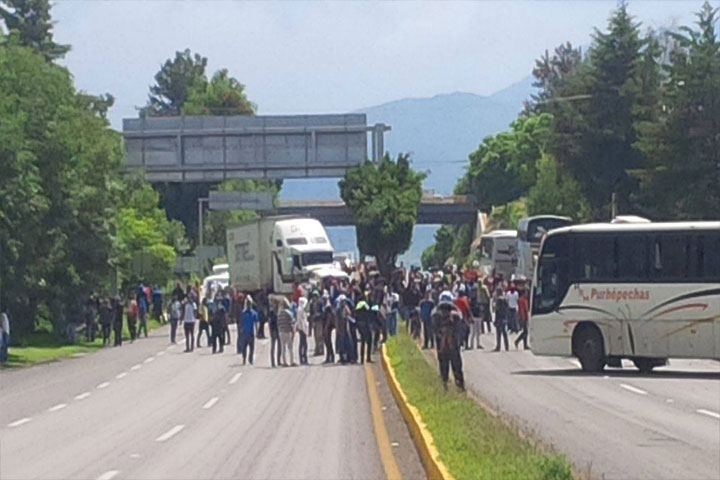 Alumnos de la Escuela Normal Rural Vasco de Quiroga, "de Tiripetío", mantienen bloqueada la carretera Federal número 14, señalan que la vialidad continuará cerrada de manera indefinida, hasta que los reciban las autoridades estatales.