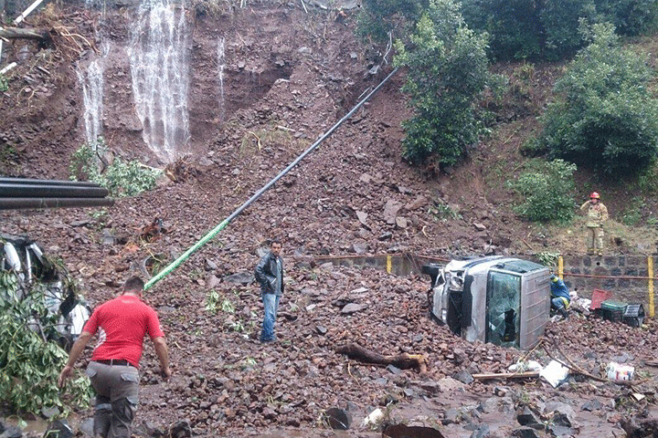NOTICIAS 26/07/2015Dos lesionados en deslave en la carretera Uruapan - ParachoUna fuerte tromba azotó la tarde de este domingo este municipio de Uruapan, lo cual provocó un deslave sobre la carretera Uruapan-Paracho a la altura del Motel Los Pinos. La tierra y pedazos de una barda del fraccionamiento El Mirador, el cual está ubicado precisamente en lo alto del cerro, cayeron sobre una camioneta que transitaba por la mencionada rúa y sobre un camión que llevaba tubos. Una familia que iba en el primero de los automotore... Ver más...