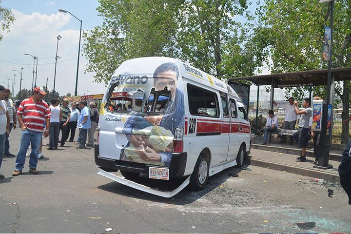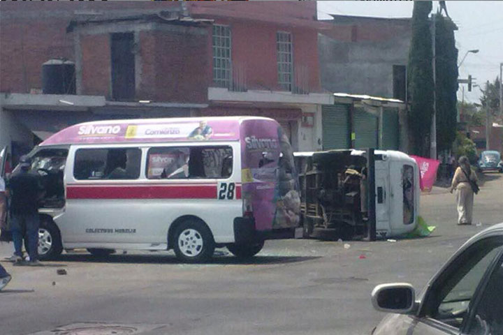 La trifulca en la que se vieron involucradas combis de la línea roja, dejó como saldo una unidad volcada y otras más con daños.