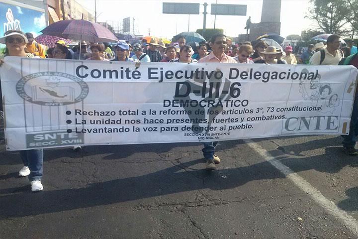 Ambos contingentes marchan rumbo al Instituto Electoral de Michoacán y al Instituto Nacional Electoral respectivamente para posteriormente tomar las instalaciones y realizar una protesta en ambos órganos electorales.