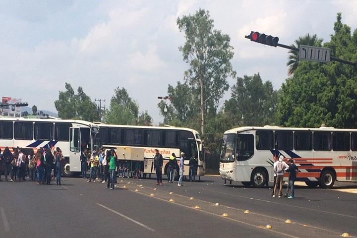 Con autobuses han bloqueado la circulación en ambos sentidos de la vialidad, ocasionando con ello severas complicaciones en ese lado de la ciudad.