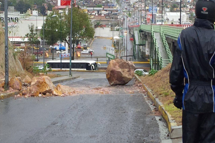 En el Periférico República, en la desviación hacia la Avenida Guadalupe Victoria, cerca del Poliforum, hubo un desprendimiento de tierra y rocas, por lo que una piedra de gran tamaño que... Ver más...