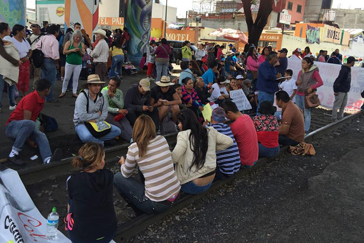 Normalistas e integrantes del Frente Cívico mantienen secuestradas las vías del tren a la altura de la colonia Tres Puentes, manifestándose en contra de las reformas estructurales que se aprobaron el año pasado por parte del gobierno federal.