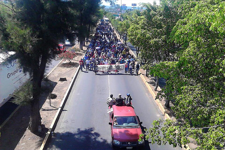 Los manifestantes, ya más de 200 jóvenes comenzaron la movilización por la avenida La Huerta y pretenden llegar hasta la avenida Madero para continuar su paso por la misma rúa hasta llegar al Congreso del Estado.