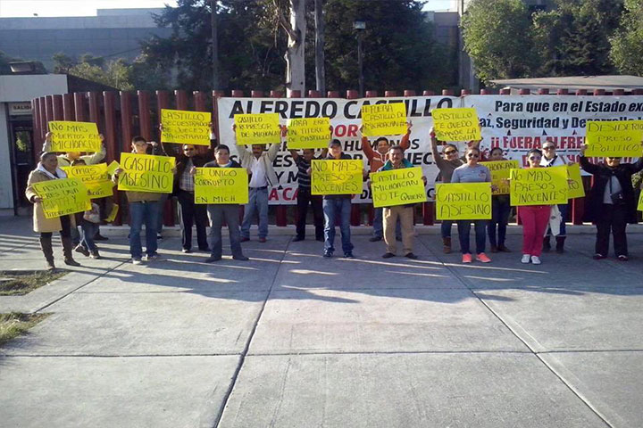 NOTICIAS 13/01/2015Protestan contra Castillo en el Congreso de la Unión A unos minutos de que comience la comparecencia del comisionado para la Seguridad y Desarrollo Integral de Michoacán, Alfredo Castillo Cervantes, un grupo de personas se manifiestan afuera del Congreso de la Unión para exigir su salida del Estado.