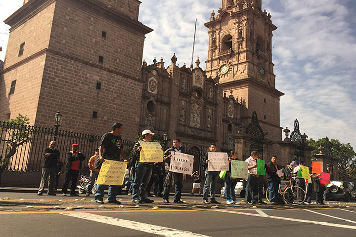 Todo comenzó alrededor de las 10:00 horas de este martes, cuando ex custodios, ex agentes estatales y ex ministeriales tomaron la Madero y con pancartas en mano protestaron contra el gobierno del estado y la Comisión para la Seguridad y el Desarrollo Integran de Michoacán.