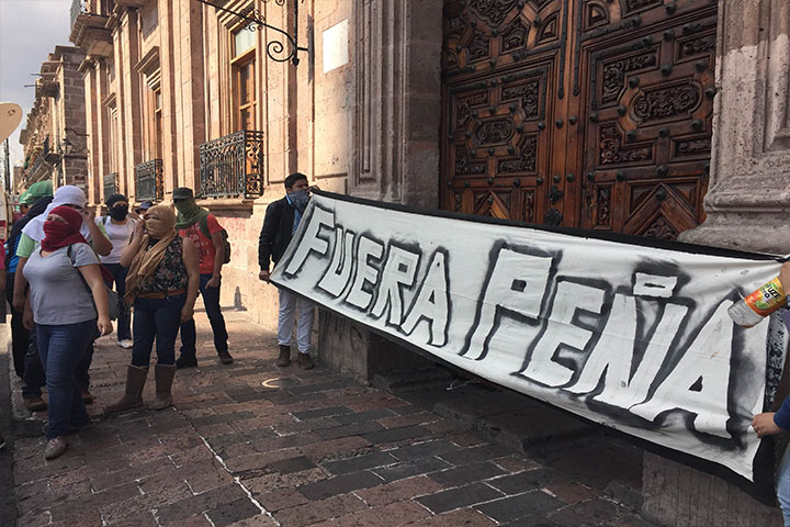 Con cantos y gritos recriminan la visita del secretario de Gobernación, Miguel Ángel Osorio Chong, a las capital michoacana, que en unos minutos más har... Ver más...