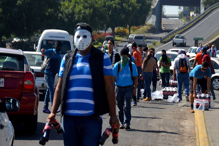 La mañana de este miércoles, la mercancía de un camión de la empresa refresquera Coca Cola fue vaciada por un nutrido grupo de estudiantes normalistas de Michoacán, quienes refirieron se manifestaban con la exigencia de que sean hallados los 43 estudiantes normalistas de Ayotzinapa, Guerrero que están desaparecidos desde septiembre pasado; los alumnos además, bloquearon por aproximadamente una hora la Calzada La Huerta, de esta capital, ... Ver más...