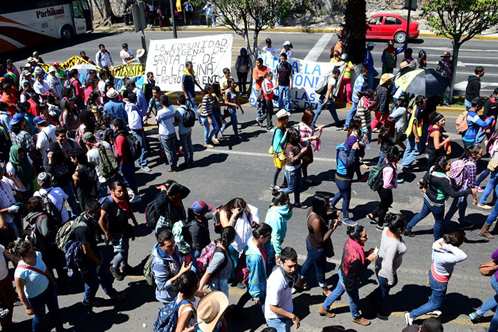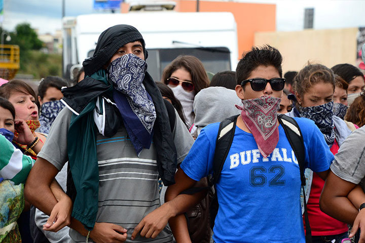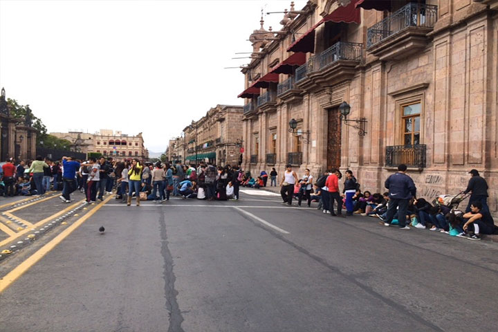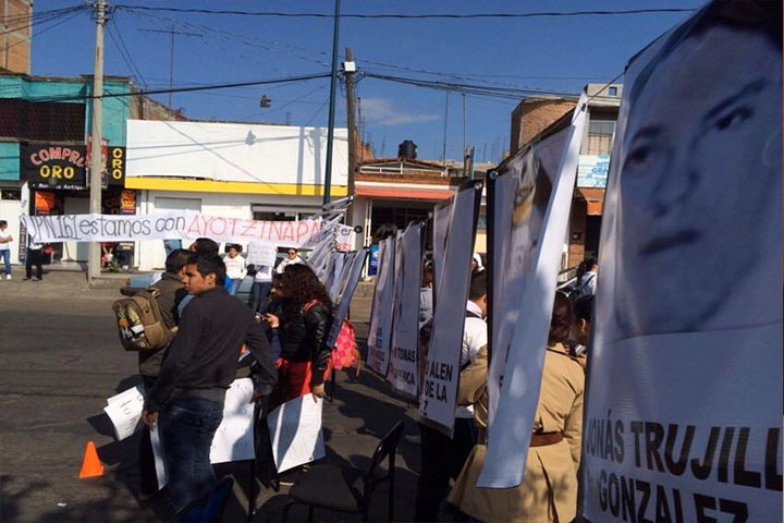 Dicho contingente inició en las Tarascas y culminó frente a Catedral, a su paso gritaron consignas "Vivos se los llevaron, Vivos los queremos de regreso".
