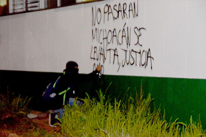 NOTICIAS 11/11/2014Crónica: normalistas recrudecen acciones, causan destrozosEste martes, en esta capital, se recrudecieron las protestas en torno al caso de los 43 normalistas desaparecidos de Ayotzinapa, Guerrero, pues sus compañeros michoacanos irrumpieron en las sedes estatales de algunos partidos políticos y causaron varios destrozos, siendo las más perjudicadas las del Partido Acción Nacional (PAN) y la del Partido Nueva Alianza, sin que hubiera reporte de lesionados ni ninguna confrontación física, indicó la... Ver más...
