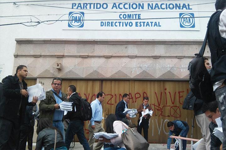 NOTICIAS 11/11/2014Normalistas atacan violentamente la sede estatal del PAN Armados con piedras, palos y bombas molotov, normalistas irrumpieron violentamente en las oficinas estatales del Partido Acción Nacional.
