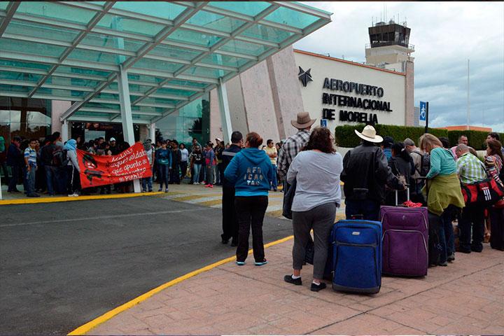 NOTICIAS 12/11/2014Normalistas bloquean el Aeropuerto de MoreliaNuevamente en protesta por los 43 normalistas desaparecidos de Ayotzinapa, Guerrero, cerca de 200 alumnos de las ocho escuelas normales de Michoacán arribaron al Aeropuerto Internacional Francisco J. Múgica, ubicado en este municipio, donde impidieron por casi tres horas el paso de los usuarios, lo cual provocó la lógica molestia de las personas, quienes manifestaron estar hartas de esta clase de manifestaciones, pues indicaron que afecta sob... Ver más...