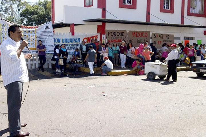 NOTICIAS 13/11/2014CNTE toma alcadías en apoyo a desaparecidos de AyotzinapaIntegrantes de la Coordinadora Nacional de Trabajadores de la Educación (CNTE) protestan en diferentes alcaldías del estado como parte de una jornada para exigir la aparición con vida de los 43 normalistas de Ayotzinapa, Guerrero.