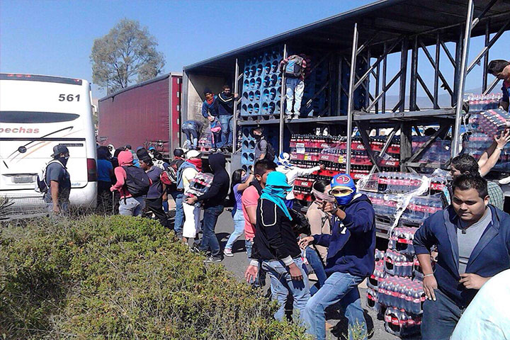 NOTICIAS 29/10/2014Normalistas toman por asalto camión de Coca ColaDe nueva cuenta normalistas incurren en actos vandálicos, en total impunidad han tomado por asalto un camión de la empresa Coca Cola.