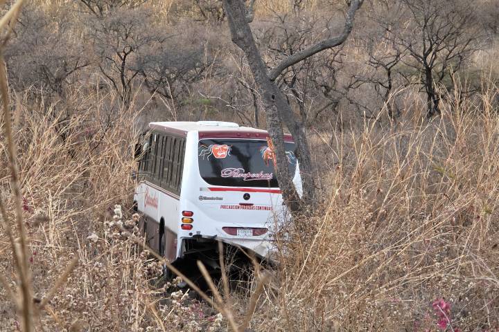 NOTICIAS 13/03/2025Camión de pasajeros se va un desnivel en la carretera Jacona - JiquilpanUn camión de pasajeros se salió de la carretera y se precipitó a un desnivel de aproximadamente 20 metros, luego de que el conductor perdiera el control del volante, seis pasajeros resultaron lesionados, por fortuna ninguno de consideración.
