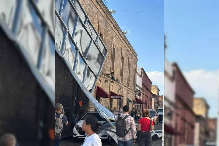 Derivado de las intensas ráfagas de viento, una techumbre de aluminio y policarbonto se desprendió de lo alto de una edificación en el Centro Histórico de Morelia y cayó a la avenida Morelos Norte, trascendió en algunos videos difundidos en redes sociales.