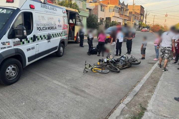 NOTICIAS 04/03/2025Niño ciclista es atropellado por motociclista de 12 años de edad, en Morelia Un niño ciclista resultó malherido tras ser embestido por un motociclista de 12 años de edad, percance que ocurrió la tarde de este martes en la colonia moreliana San Isidro ItzÃcuaro, indicaron autoridades policiales.