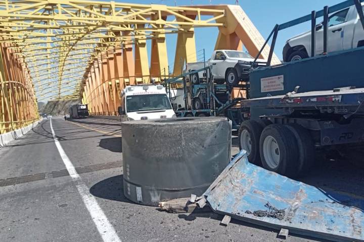 NOTICIAS 26/01/2025Cae rollo metálico de plataforma y genera casos vehicular en la Siglo XXI Un rollo metálico de gran tamaño que era remolcado por un tractocamión en una plataforma, se zafó de las cadenas que le sujetaban y acabó estorbando en la autopista Siglo XXI. En otro hecho en la caseta de Zirahuén un tortón de reversa chocó contra una camioneta particular.