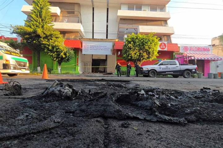 NOTICIAS 17/10/2024Presuntos normalistas vandalizan edificio del Iemsysem y queman vehÃculo, en Morelia