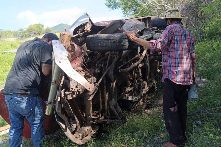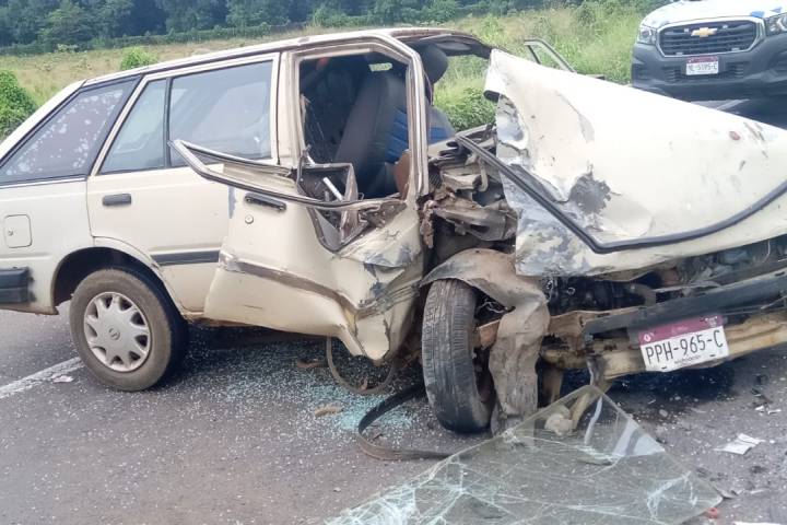 El accidente se registró en las inmediaciones del kilómetro 171 + 000 de la citada vialidad, donde una camioneta de color guinda con caja blanca acabó convertida en chatarra, milagrosamente sus ocupantes salieron por su propio pie.