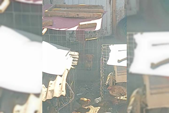 Algunos vecinos comentaron que el perrito está mal alimentado y siempre encerrado en la jaula. Los bomberos municipales acudieron al sitio, pero no pudieron liberarlo porque es propiedad privada.