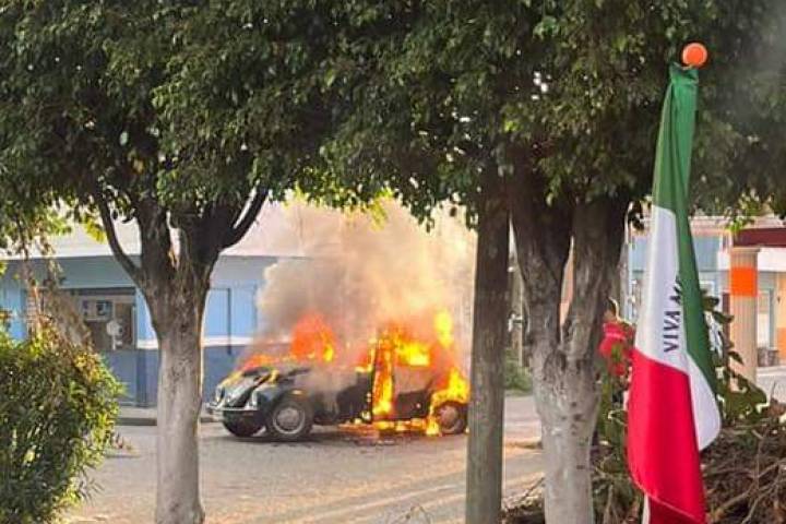 NOTICIAS 27/09/2023Se quema "Vocho" en la colonia La PerlaUn auto Volkswagen terminó convertida en chatarra, luego de que se incendiara debido a una aparente falla. Hechos ocurridos en la colonia La Perla, aledaña a Villas de la Fuente.