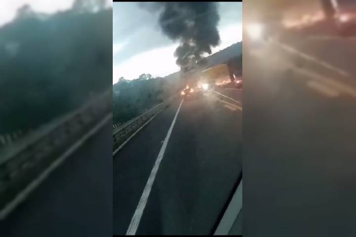 NOTICIAS 05/08/2023Tráiler arde en llamas en la Pátzcuaro - CopándaroPor causas hasta el momento no determinadas, un camión de carga ardió en llamas sobre la autopista Pátzcuaro ? Copándaro, desconociéndose si el siniestro ha dejado víctimas.