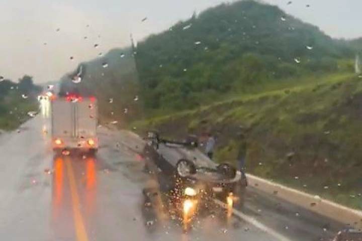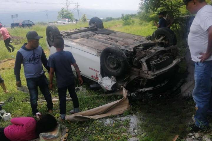 El hecho se registró al mediodía de este domingo, a la altura del Rancho Galeana, dónde el vehículo de alquiler, uno de la marca Nissan March, de color blanco con rojo, y logotipos de la CROC, se salió de la carpeta asfáltica y acabó volteado.