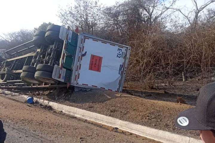 NOTICIAS 26/03/2023Se vuelca camión cervecero.Un tracto camión que transportaban cartones de cerveza, volcó, cuando circulaba sobre la autopista Siglo XXI, en el kilómetro 298.