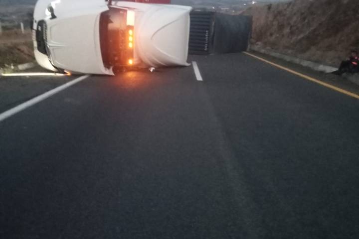 NOTICIAS 09/05/2023Vuelca tractocamión en la autopista de OccidenteLa mañana de este martes, un tractocamión volcó sobre la autopista de Occidente sin que por fortuna se reportaran personas lesionadas, según se supo en la cobertura noticiosa.