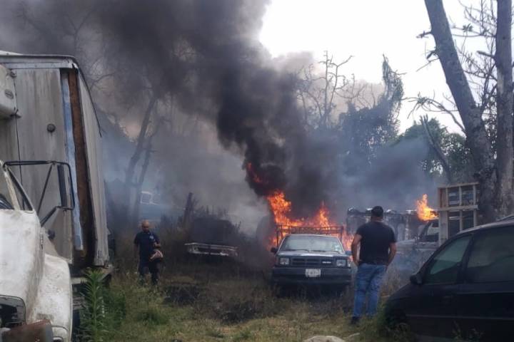 Poco después del mediodía, se dio la voz de alerta, ya que, al interior de dicho corralón, el fuego consumía varios vehículos, por lo que arribaron al lugar, elementos de Bomberos del Cuerpo de Rescate y de Bomber... Ver más...