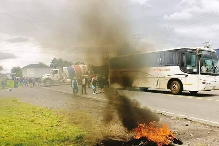 Un grupo de civiles se apoderó de un camión de carga, un autobús de pasajeros y varios vehículos más, con los que bloqueo la Autopista Siglo XXI a la altura de la desviación a Zirahuén, así como la caseta remota y la carretera libre Uruapan ? Pátzcuaro. Mientras que en Tiamba, municipio de Uruapan, pobladores reportaron bloqueos en los accesos por civiles armados, presuntos integrantes del grupo "Pueblos Unidos".