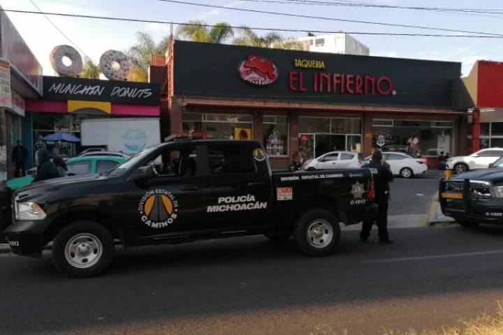 NOTICIAS 05/01/2022Se registran detonaciones de pistola en la Av. Camelinas de Morelia; hay un detenidoDurante la tarde de este miércoles se registraron varias detonaciones de arma de fuego afuera de la taquería El Infierno, ubicada en la avenida Camelinas, al sur de Morelia. Por fortuna no hubo lesionados ni fallecidos, de acuerdo con la información otorgada por la Secretaría de Seguridad Pública (SSP), la cual indicó que un sospechoso quedó detenido y le fueron confiscadas dos pistolas.