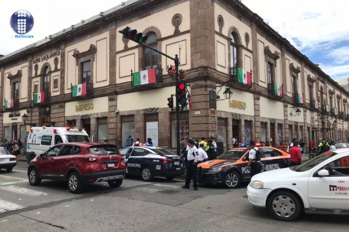 Agentes de la Policía Morelia auxiliaron a una mujer que estaba a punto de dar a luz, en el Centro Histórico de la capital Michoacana.