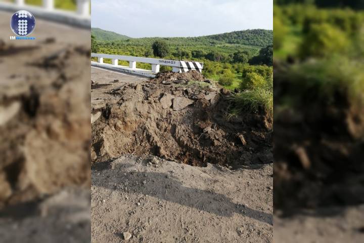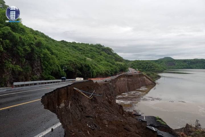 Lo anterior se atribuye a las lluvias ocasionadas por el huracán Enrique, han generado que los niveles de agua en la presa Francisco J. Múgica aumenten de forma considerable, lo que humedeció la tierra y generó que la carretera Siglo XXI que conecta a gran parte del estado colapse.