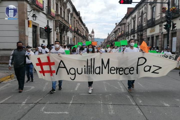 Un contingente de ciudadanos integrados por habitantes de Aguililla, familiares de personas de ese municipio, así como amistades, realizaron una marcha en la ciudad de Morelia para exigir se restablezca la seguridad y el libre tránsito en esa zona.