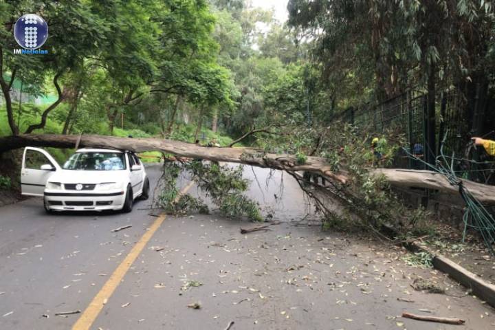 Un árbol colapsó y cayó sobre el toldo de un automóvil que en ese momento circulaba por la avenida Rey Tangaxoan II, ubicada al sur de Morelia, trascendió en la labor noticiosa.
