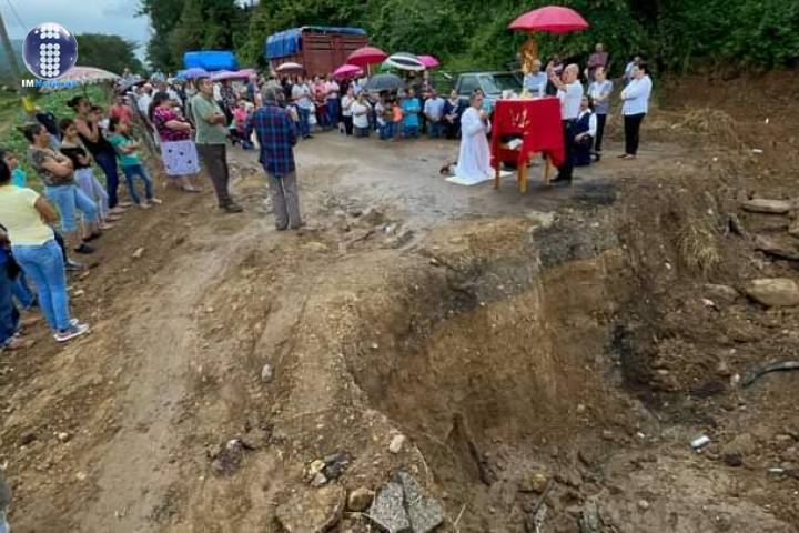 NOTICIAS 17/08/2021Párroco y feligreses de Coalcomán hacen misa junto a carretera destrozadaEl titular de la parroquia de Santiago Apóstol en Coalcomán, Jorge Luis Martínez, acudió en compañía de 150 feligreses a la carretera Coalcomán - Tepalcatepec, a uno de los puntos dañados por delincuentes, para realizar una misa por la paz.