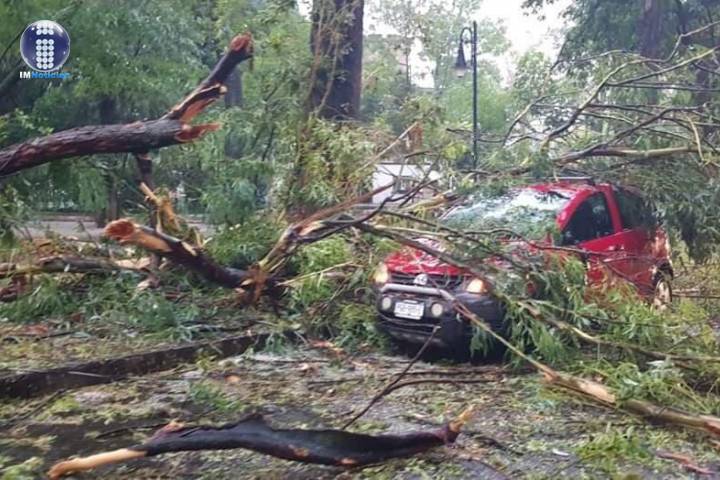 La tarde de este martes una granizada azotó la capital del estado y hubo encharcamientos en diversas calles y colonias, así como la caída de ramas y autos quedaron varados entre el agua, además un letrero de "Morelia" acabó afectado en la Plaza de Armas.