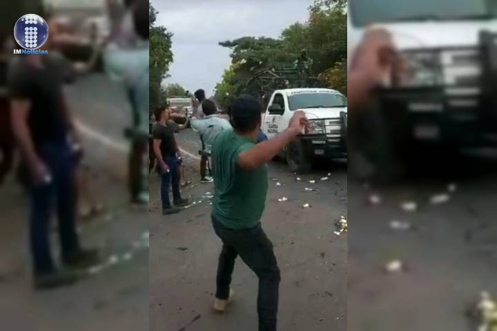 NOTICIAS 03/02/2020Civiles reciben a "huevazos" a la GN en narcobloqueo en Cenobio MorenoLos elementos de la Guardia Nacional (GN) fueron recibidos a "huevazos" por un grupo de civiles, esto durante el narcobloqueo que se registró hoy en la carretera Apatzingán-Aguililla en este municipio. Se presume que estos sujetos que agredieron a los uniformados son simpatizantes de los grupos armados que operan en la región, dijeron contactos gubernamentales.