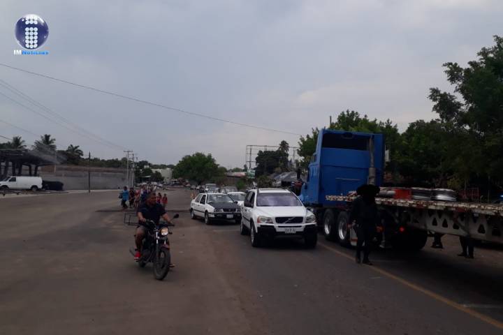 Los inconformes atravesaron un tractor en el que colocaron un manta en la que queda de manifiesto su demanda: