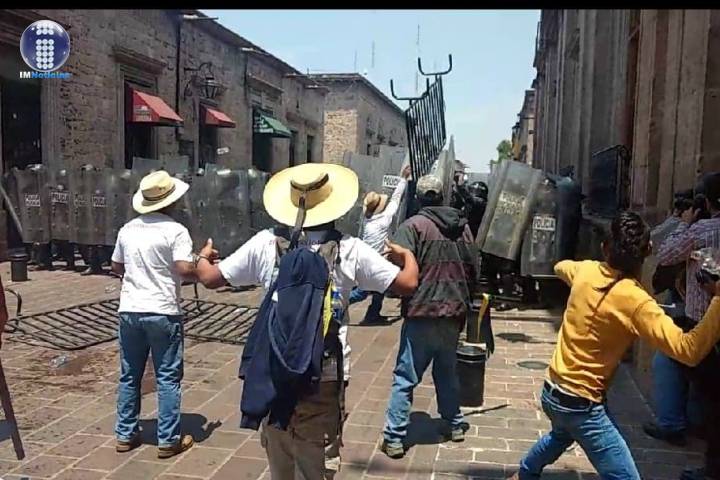 NOTICIAS 05/04/2019Arantepacuenses intentan ingresar a la fuerza a Palacio de Gobierno y enfrentan a la UROP