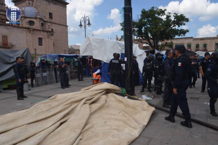 Miembros del Frente Nacional de Lucha por el Socialismo (FNLS) se retiraron de la Plaza Melchor Ocampo, donde previamente se registró una gresca entre algunos de sus miembros y elementos de la Unidad de Restablecimiento del Orden Público (UROP) de la Policía Michoacán.