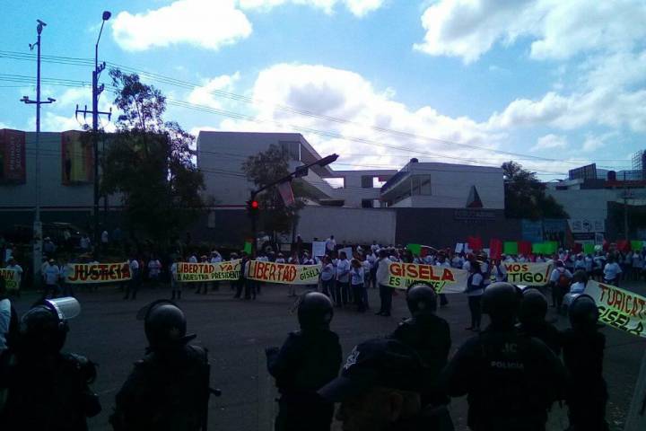 Un nutrido grupo de personas se manifestó la mañana de este lunes frente a Casa de Gobierno, los inconformes traían pancartas en las que se podía leer "Libertad para Gisela".