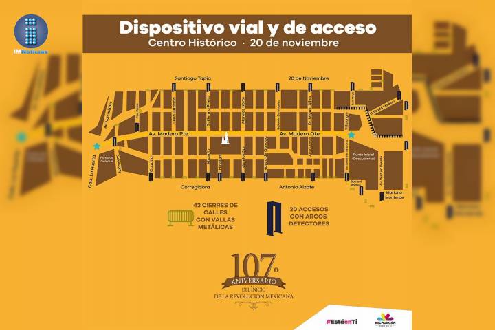 NOTICIAS 19/11/2017Listo dispositivo vial para el desfile del 20 de noviembreCon la finalidad de garantizar el orden y proporcionar seguridad a los asistentes al desfile cívico-deportivo conmemorativo del "CVII Aniversario del Inicio de la Revolución Mexicana", la Secretaría de Seguridad Pública (SSP) alista un dispositivo vial y de acceso al primer cuadro de Morelia.