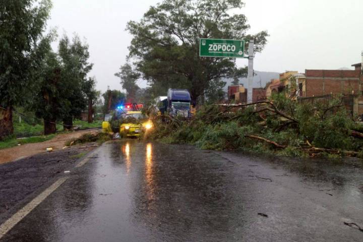 El incidente ocurrió en el municipio de Chilchota a la altura de la localidad de Zopoco, donde las lluvias afectaron al árbol que cayó sobre la cinta asfáltica.