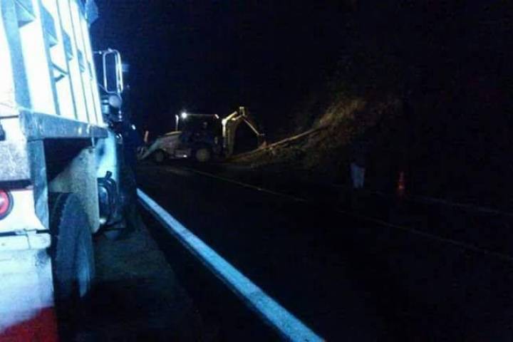 Durante la noche del viernes, se reportó que a la altura del kilómetro 8 de la vialidad en mención, a la altura del pueblo de Santa Cruz un alud de tierra cubría la cinta asfáltica.